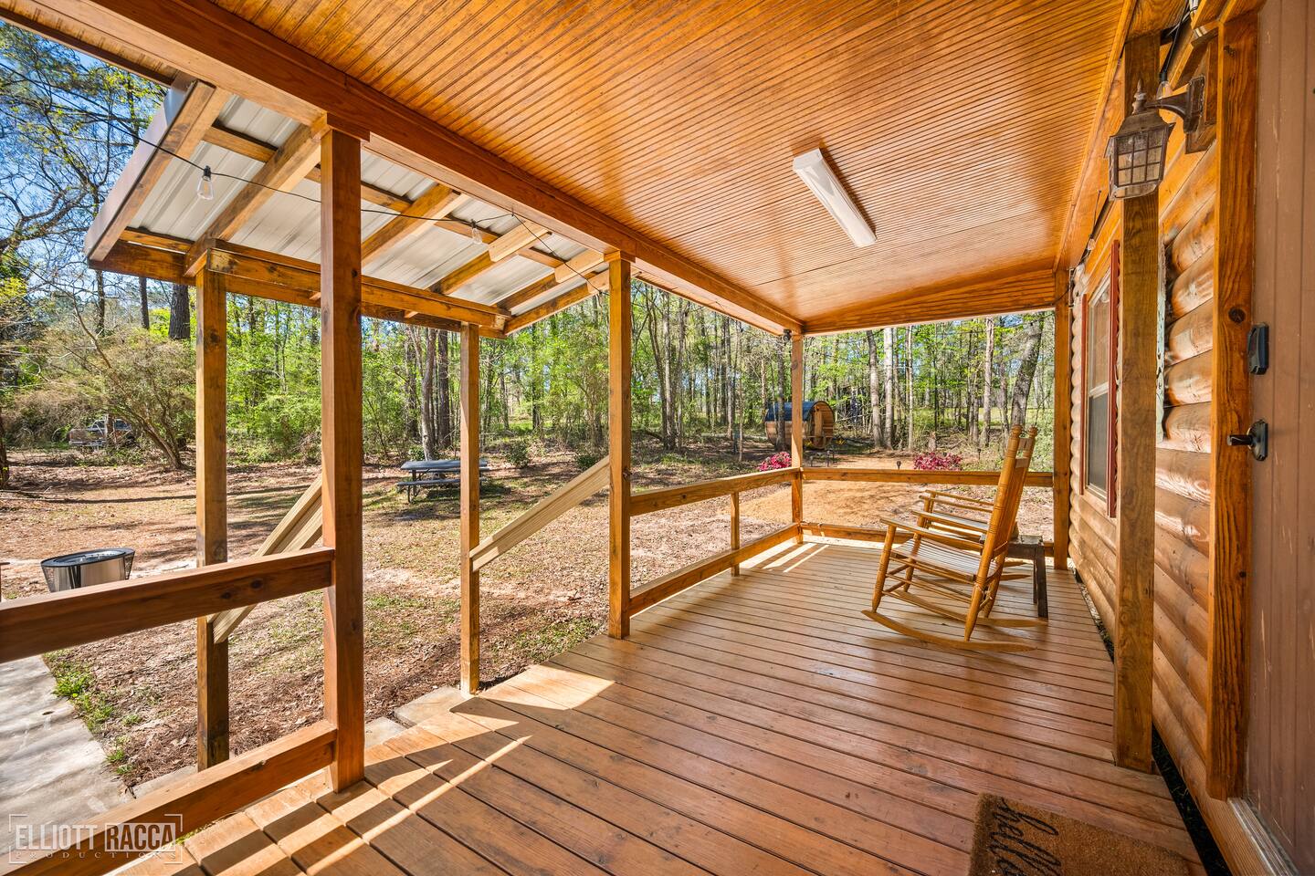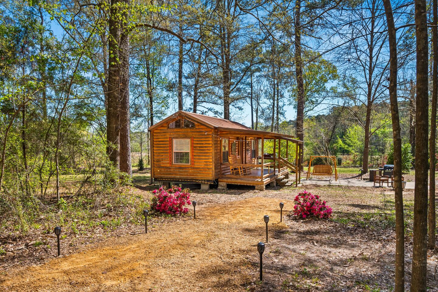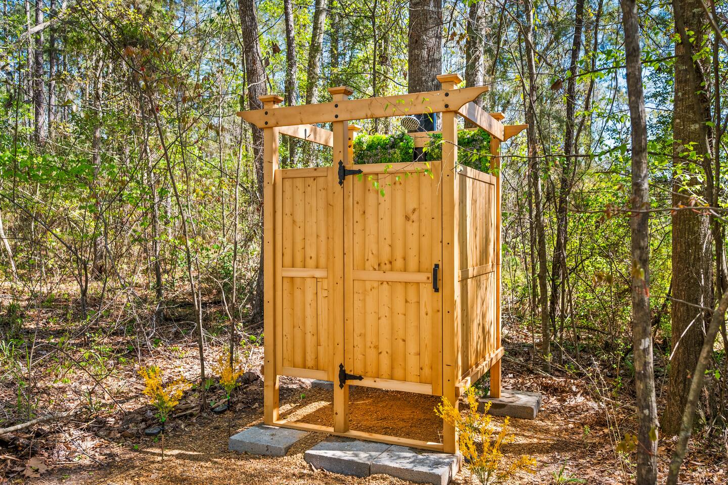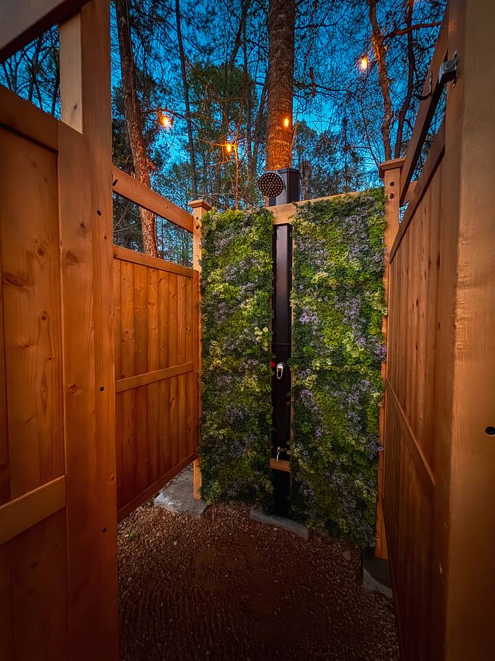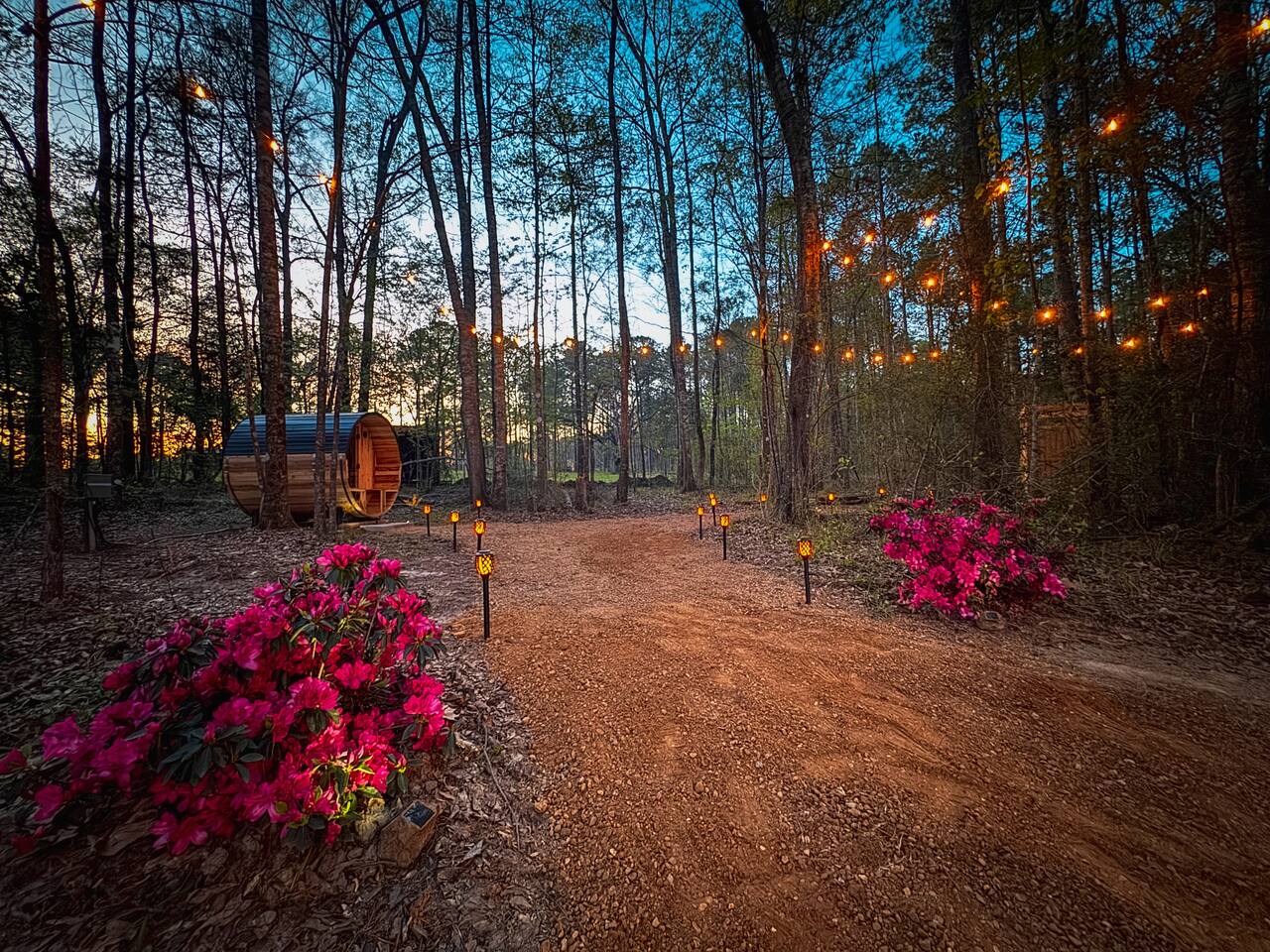 🌲 Cooper’s Lodge — Private Forest Spa Retreat A secluded one‑bedroom lodge tucked deep in the Louisiana pines, designed for couples who want quiet, comfort, and a touch of luxury. Guests enjoy private access to a Finnish barrel sauna, an outdoor shower under the trees, and access to more than 200 acres of forest and creek land for hiking, fishing, and exploring just across the lane. 🌿 The Space A warm, modern interior with everything you need for a peaceful stay: • One bedroom with plush bedding • Fully equipped kitchenette with dishwasher, fridge/freezer, and microwave • Cozy living area with forest views • Heating, cooling, and all essentials for year‑round comfort 🔥 Outdoor Cooking Porch Your covered cooking porch is built for slow evenings and great meals: • Commercial‑grade griddle • Wood‑fired pizza oven • Prep space and seating surrounded by towering pines *Separate grilling area and smokeless firepit with grill are down on the concrete patio 🧖♀️ Private Sauna & Outdoor Shower A short walk down a lantern‑lit forest path leads to your own wellness hideaway: • Finnish cedar barrel sauna (dry heat or steam) • Outdoor shower tucked beneath the trees • Quiet clearing for cooling off, stretching, or stargazing 🌊 200+ Acres of Private Wilderness Guests have full access to the adjacent forest sanctuary: • Miles of hiking trails • Creeks perfect for splashing, wading, and cooling off • Fishing spots and hidden clearings • Wildlife sightings and endless photography moments ✨ Perfect For • Romantic getaways • Wellness weekends • Anniversaries • Unplugged escapes Cooper’s Lodge is a place to slow down, breathe deeper, and reconnect—with nature, with your partner, and with yourself.